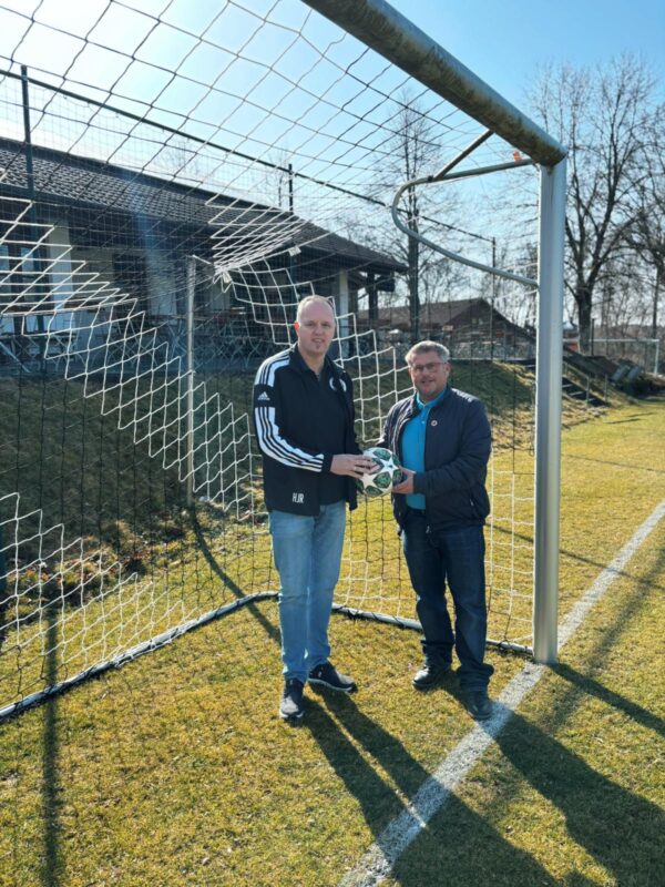 Die neuen Netze schmücken nun das Tor unserer Fußballanlage und stehen sinnbildlich für die enge Verbundenheit zwischen der Marktgemeinde Tann und dem TSV. Erster Vorstand Fußball Hans-Jürgen Reiß nutzte die Gelegenheit, sich persönlich bei Bürgermeister Schmid zu bedanken und sich in einem kurzen Austausch über den Fußball und das Vereinsleben in Tann zu unterhalten.